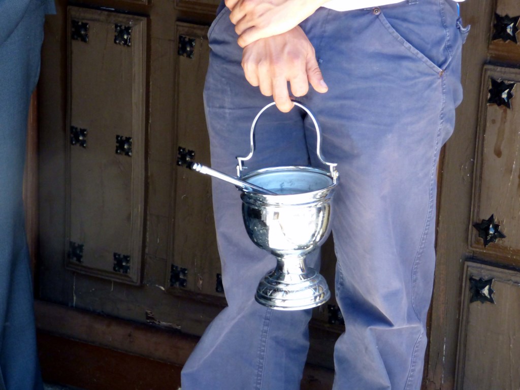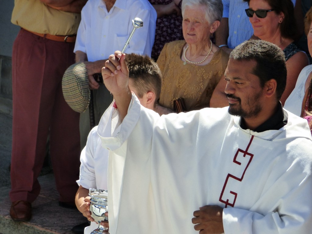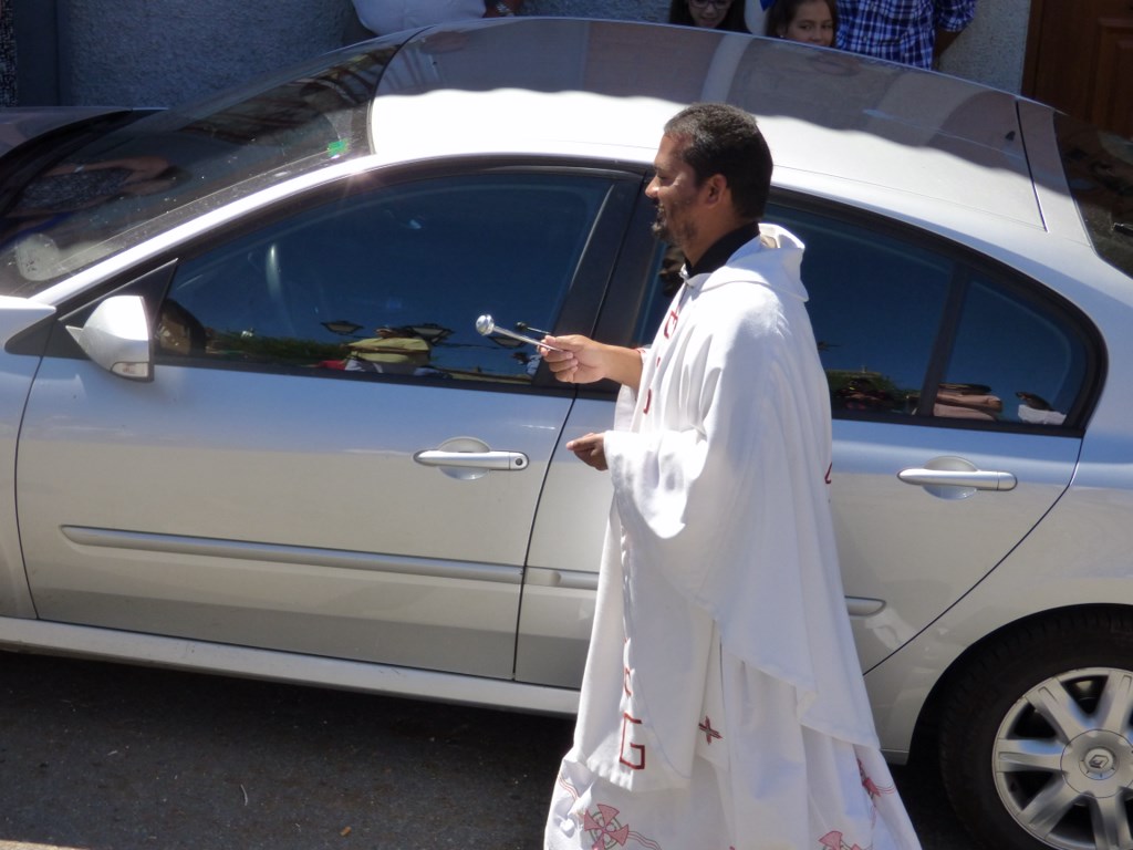 el cura bendice el coche. Una vez que han pasado los coches, la precesión se dirige hacia la puerta de la iglesia