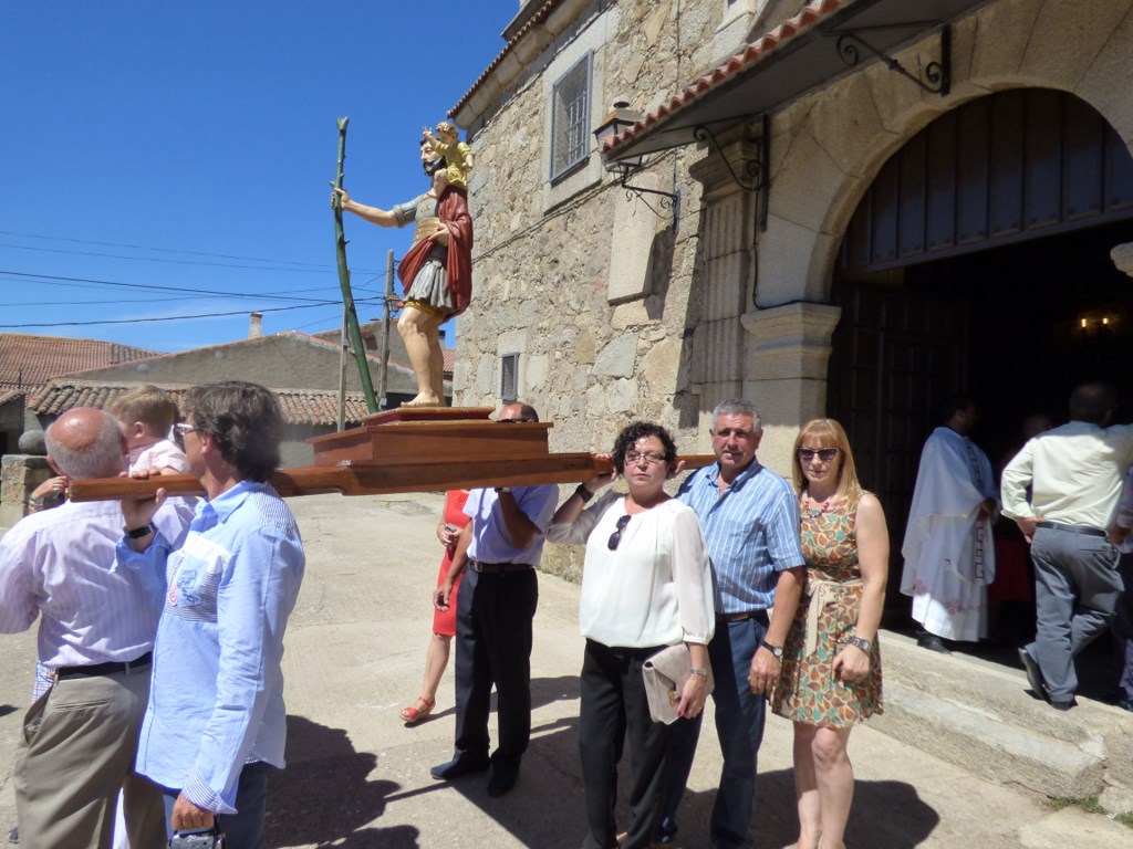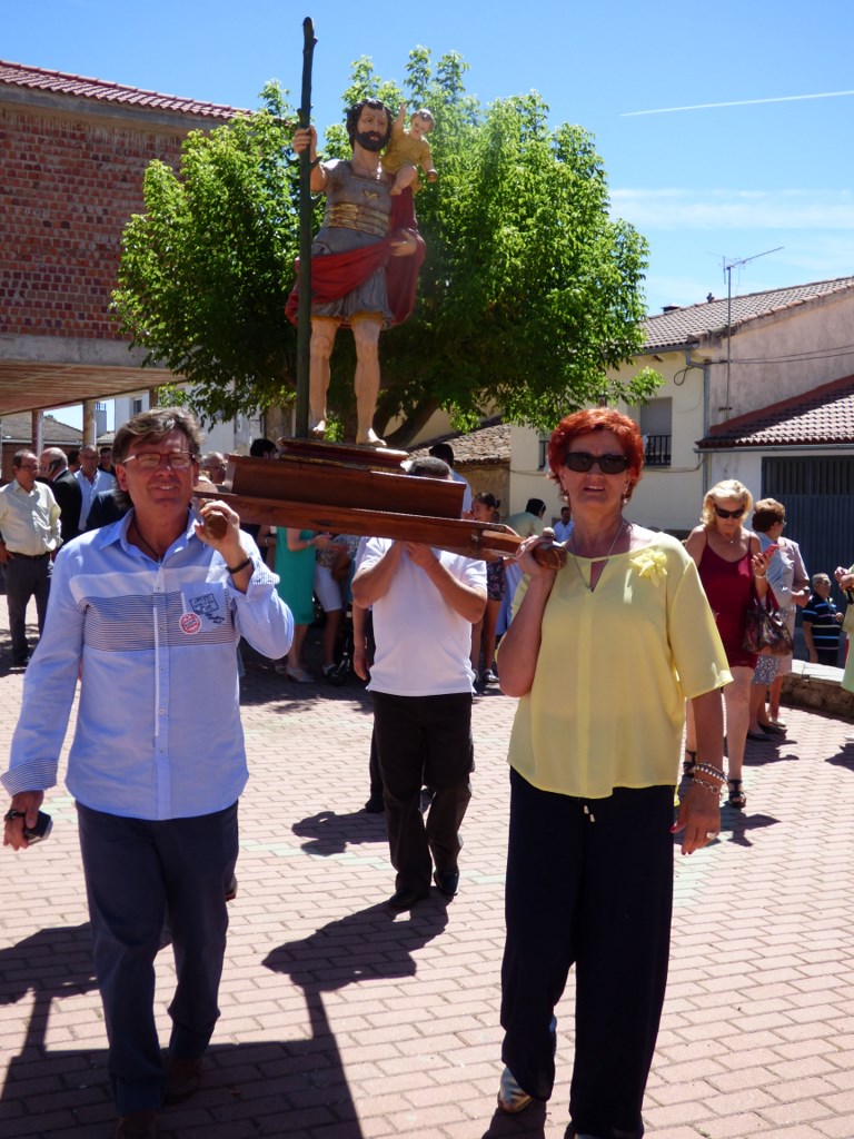 Hay una misa y a continuación se saca a la imagen de San Cristobal por las calles del pueblo llevada por
